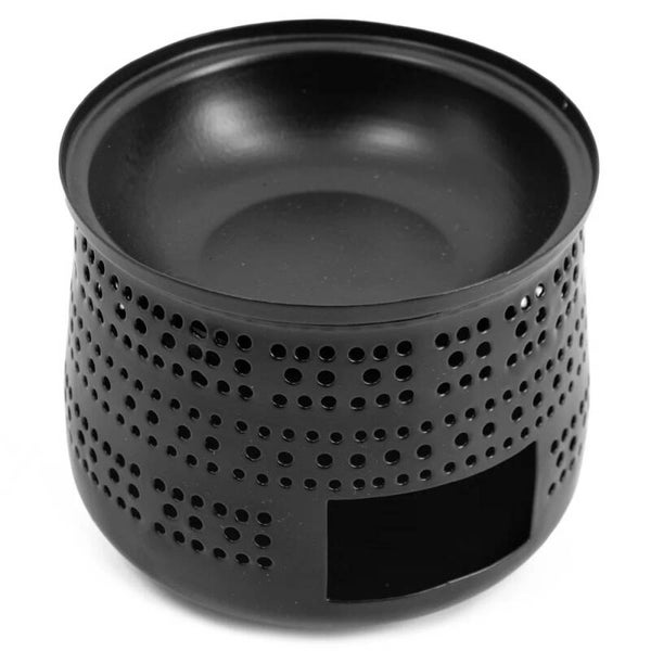 De geurbrander cirkel zwart kan bovenin worden gevuld met een stukje waxbar of amber. Met een waxinelichtje aan de onderkant verwarm je de bovenkant van de brander. De geuren komen door de warmte vrij en jouw complete huis zal heerlijk ruiken! De afmetingen van deze geurbrander zijn 11,5x12,5x10cm.